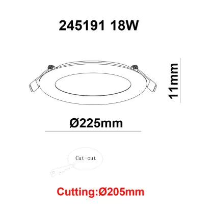 Descrizione Downlight LED UltraSlim 18W 1450lm 110D - 840 Bianco Freddo | 220mm - Ritaglio 205mm