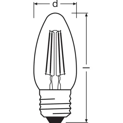 Descrizione Ledvance Classic LED E27 Candela Filamento Chiara 4W 470lm - 827 Bianco Molto Caldo | Sostitua 40W