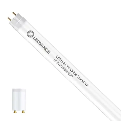 Il Ledvance Tubo LED T8 Value (EM/Mains) Standard Output 18.3W 2000lm - 830 Luce Calda | 150cm - Sostitutiva 58W è l’alternativa perfetta per il tubo fluorescente standard 58W nelle plafoniere con un reattore. Con questo tubo LED hai una garanzia di una vita media utile molto lunga e 5 anni Lampadadiretta.it di totale garanzia. .
