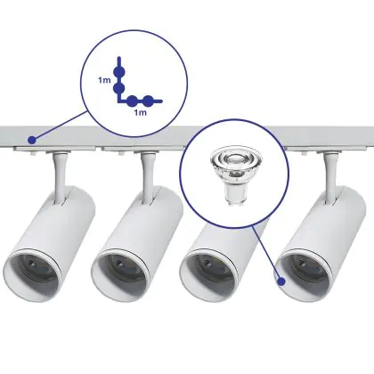 | Nome del fabbricante | Complete L shaped 1-Phase Track Set White incl. 4x Spot fixture + GU10 2700K 3W Dim – 1 x 1 meter i | |